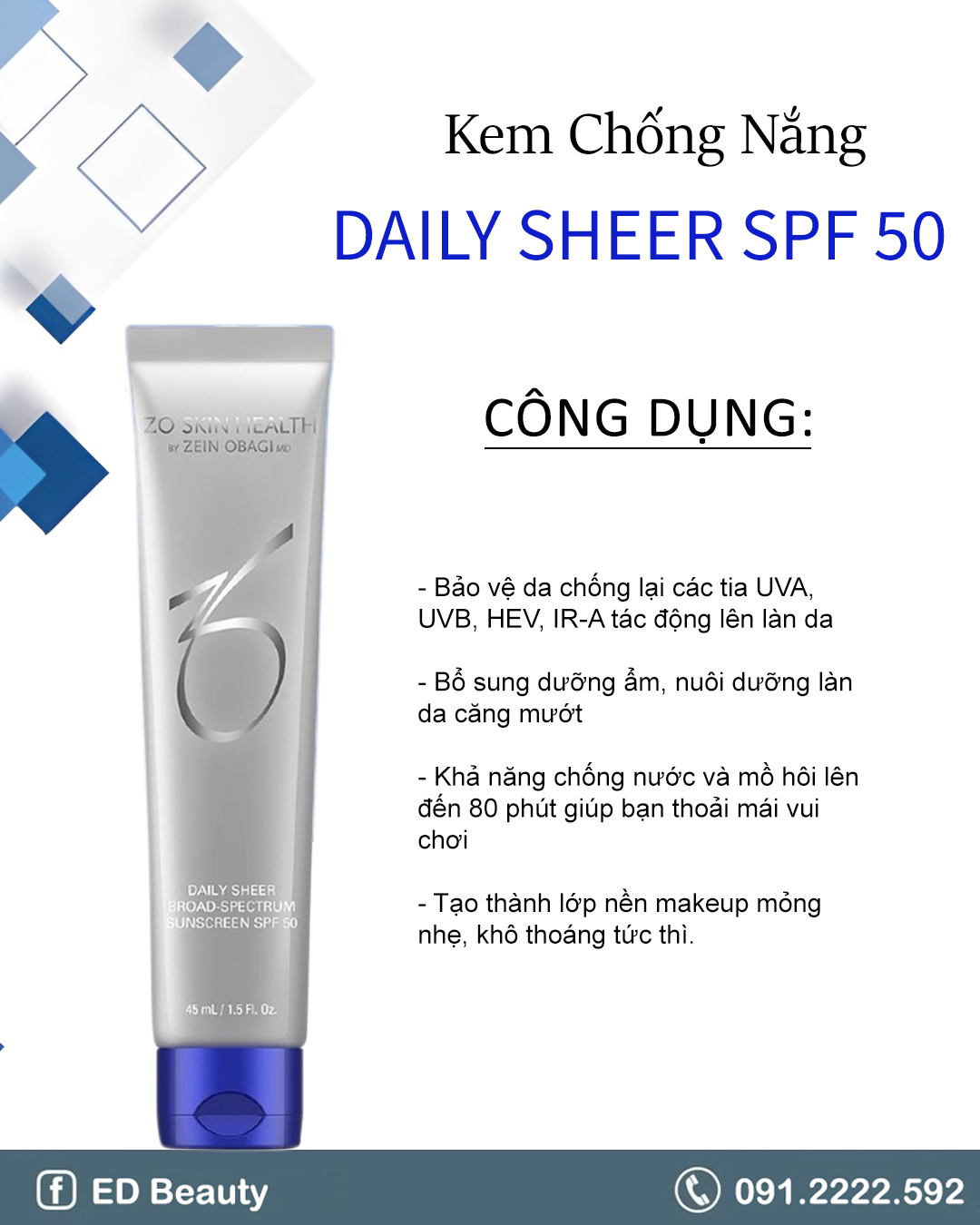 Công dụng của kem chống nắng Zo Skin Health Daily Sheer Broad Spectrum SPF 50